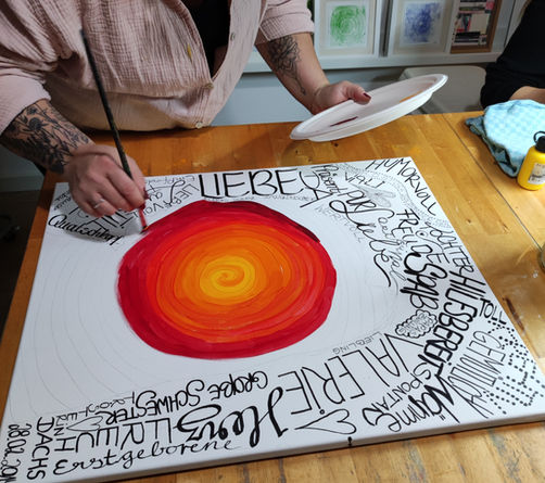 Im Kunstraum wollen wir wertschätzende Worte für das Gegenüber und die künstlerische Gestaltung dieser Wertschätzung, miteinander verbinden. Diese positive, zwischenmenschliche Erfahrung vertieft die Beziehung auf emotionaler Ebene.
